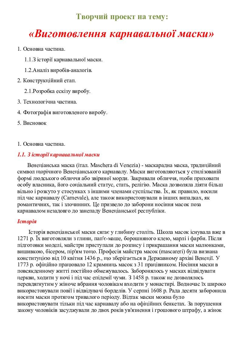ЗАВДАННЯ: знайти в інтернеті моделі аналоги карнавальних масок, фото прикріпити у щоденник
